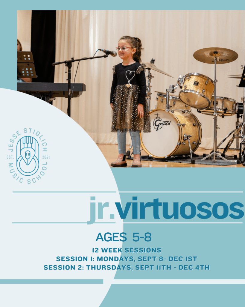 Junior Virtuosos is the premier group class for your child to get a great introduction to all things music! Classes are designed to get children making music with others all while learning about the foundations of music. Students will learn how to sing and use their voices in a healthy way, acquire basic piano skills, get introduced to reading music notation, and so much more! Junior Virtuosos is a great way for younger students to creatively explore music, while older students can take on leadership opportunities and learn something new along the way. Junior Virtuosos is scheduled for 12-week sessions and concludes with an exciting short performance for friends and family on the final day of class!
